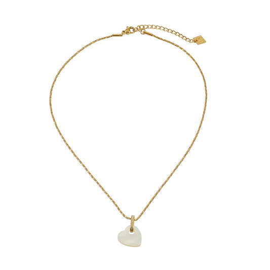 KAO Gold: Mother of Pearl Heart Pendant Necklace with Zirconia Stones