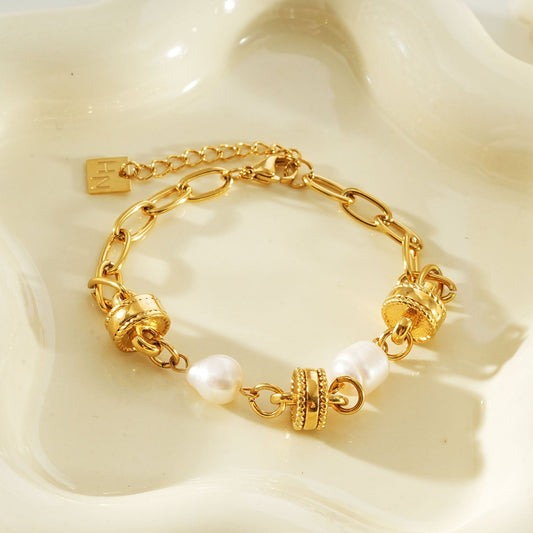 ARGENTA Gold: Regal Harmony Chain Bracelet with Relic Orbs and Freshwater Pearls