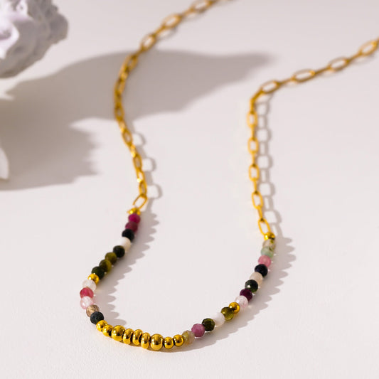 SEHAR Gold: Mixed Stone & Gold Beaded Necklace