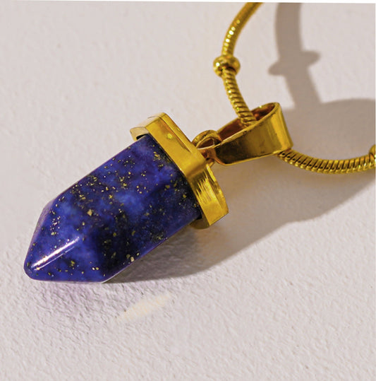 VIOLA: Lapis Lazuli Stone Pendant Anchored on a Beaded Snake Skin Textured Chain Necklace