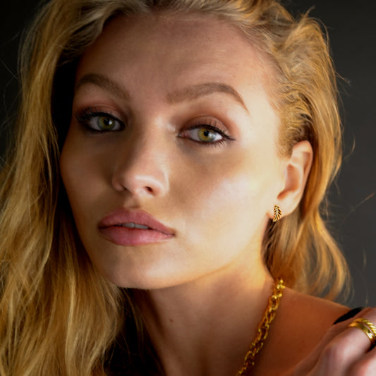 FELTHAM Gold: Contemporary Hammered Look Stud Earrings