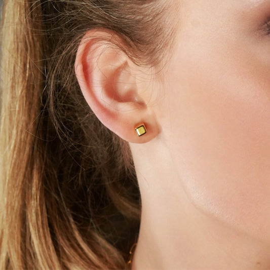 SYNNE: Square Bead Minimalist Stud Earrings in Gold & Silver