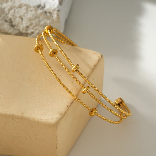 Style FARZIKA Gold: Triple Stacked Textured Beaded Bracelet