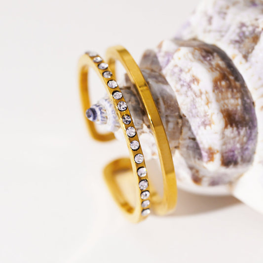 AIZA: Twin Banded Ring with Pavé Zirconia & Smooth Finish Contrasting Surfaces