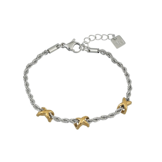 DRAGOSA Mixed Metals: Silver Rope Chain Bracelet with Triple Mini Gold Criss-Cross Charms