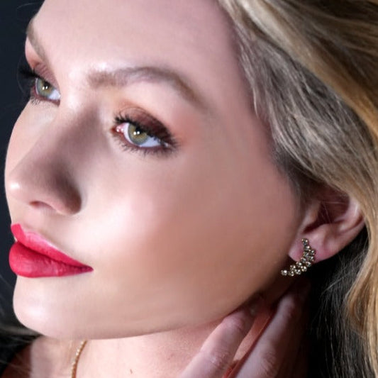AISLEY Crescent Moon Stud Earrings Embellished with Zirconia Gemstones