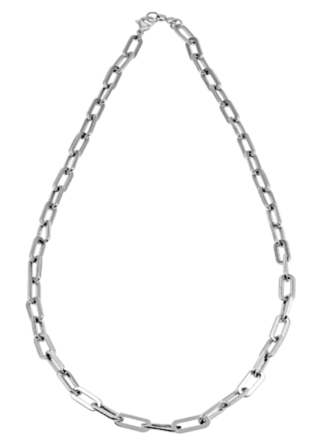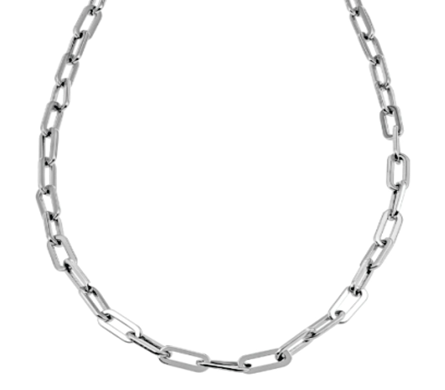 Update your jewelry collection with our Industrial-Chic influenced Silver Chain Link Paper-Clip Necklace, a contemporary piece designed for those who appreciate understated elegance. Crafted in 18K white gold, this 22" necklace combines the classic charm of silver with the luxurious sheen of white gold, creating a versatile accessory that complements any style.